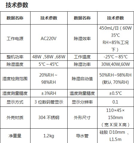 4、 濕度、溫度傳感器24小時(shí)實(shí)時(shí)采樣,超出設(shè)定啟動(dòng)值自動(dòng)除濕;